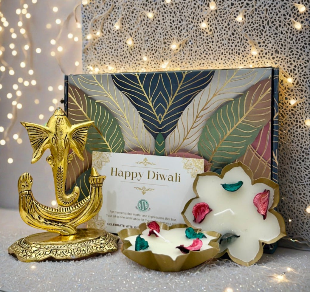 Diwali Gift Box – Palm Ganesh & Metal Wax Diya Combo