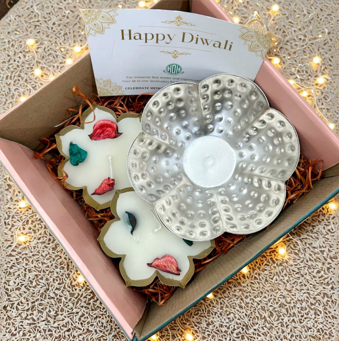 Diwali Gift Box – Urli & Metal Wax Diya Combo