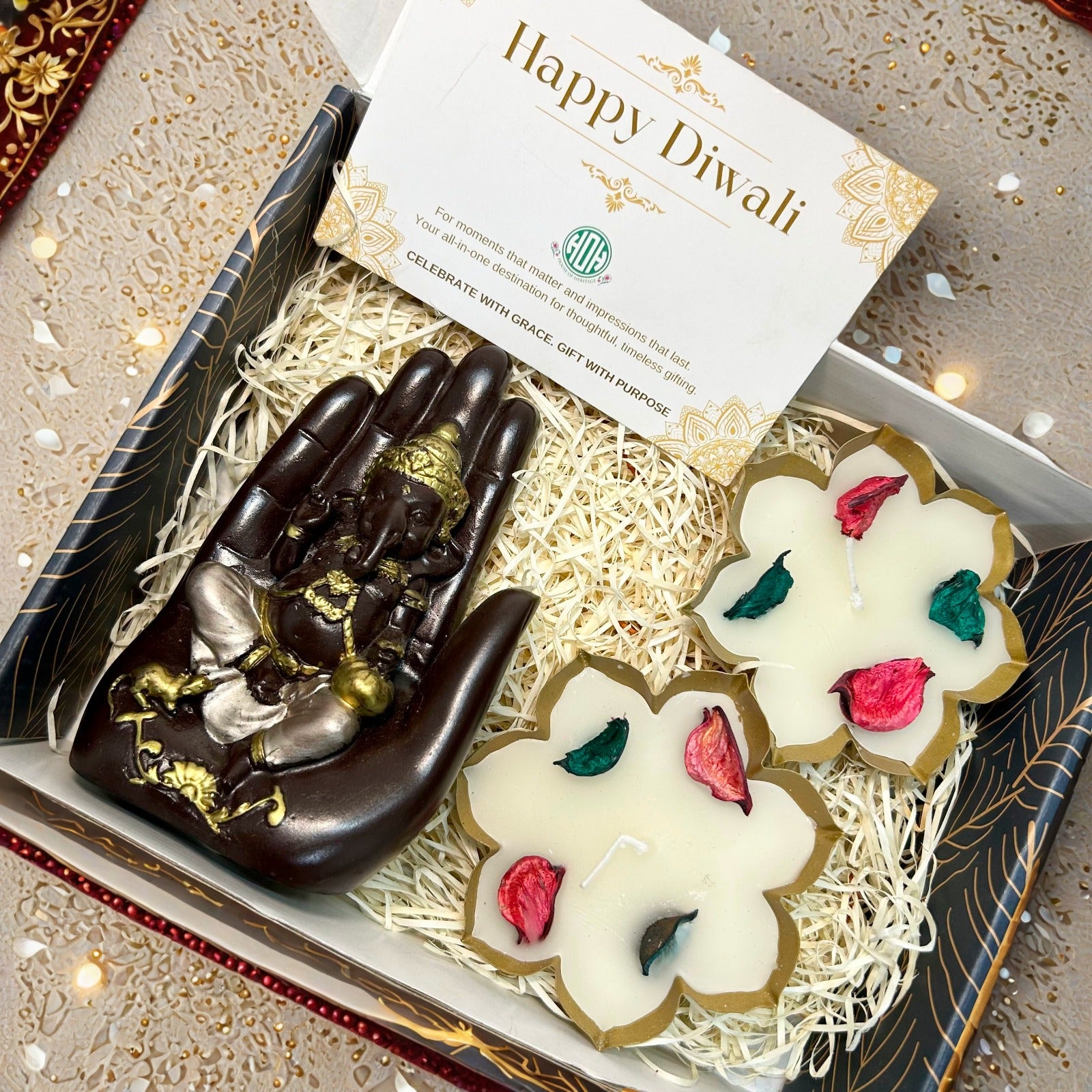 Diwali Gift Box – Palm Ganesh & Metal Wax Diya Combo