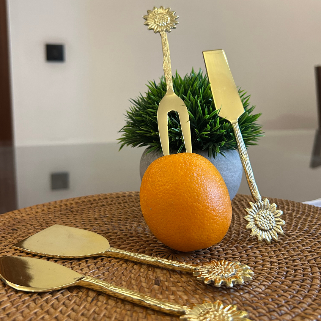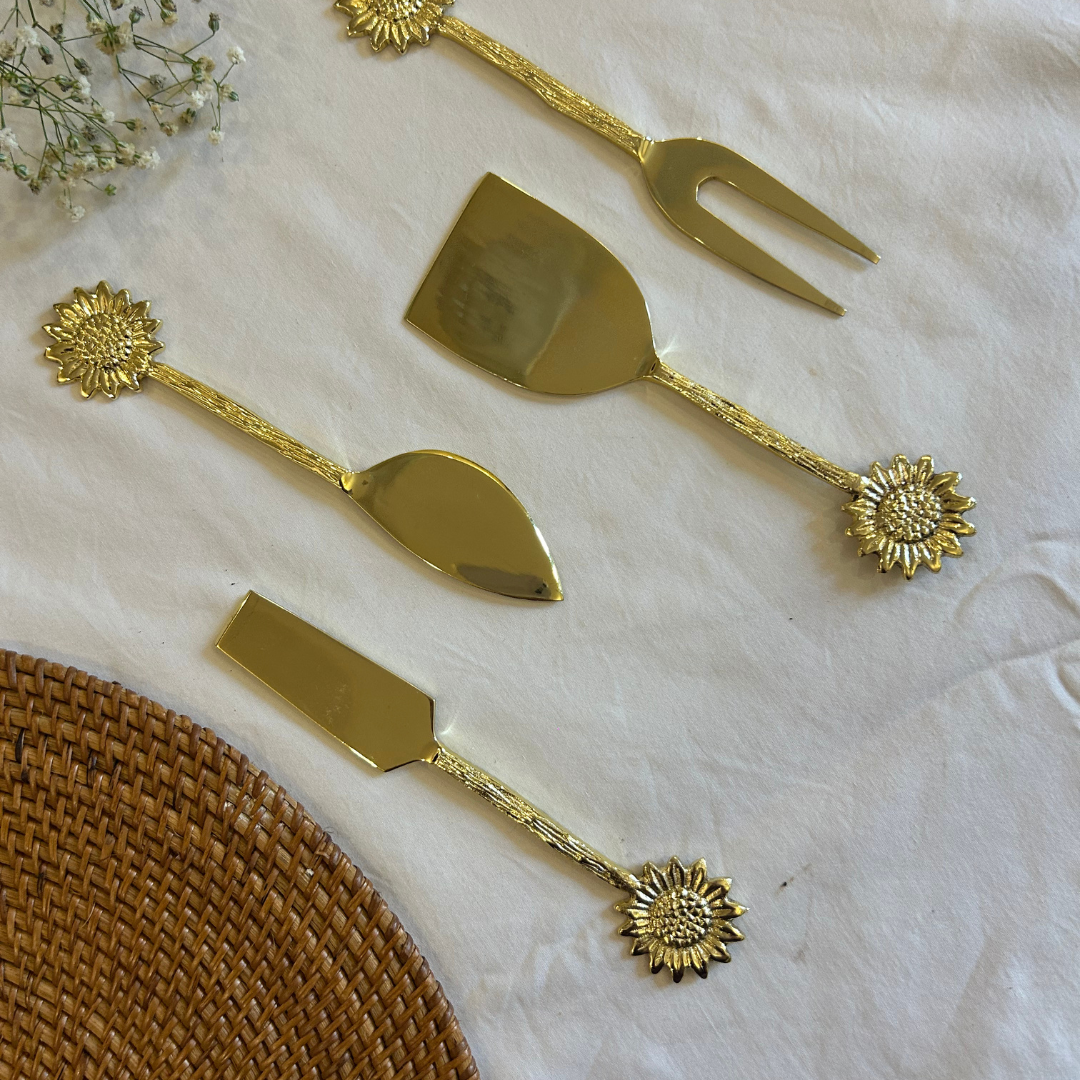 Elegant Gold-Plated Cheese & Dessert Cutlery Set with Sunflower Design Handle (Set of 4)