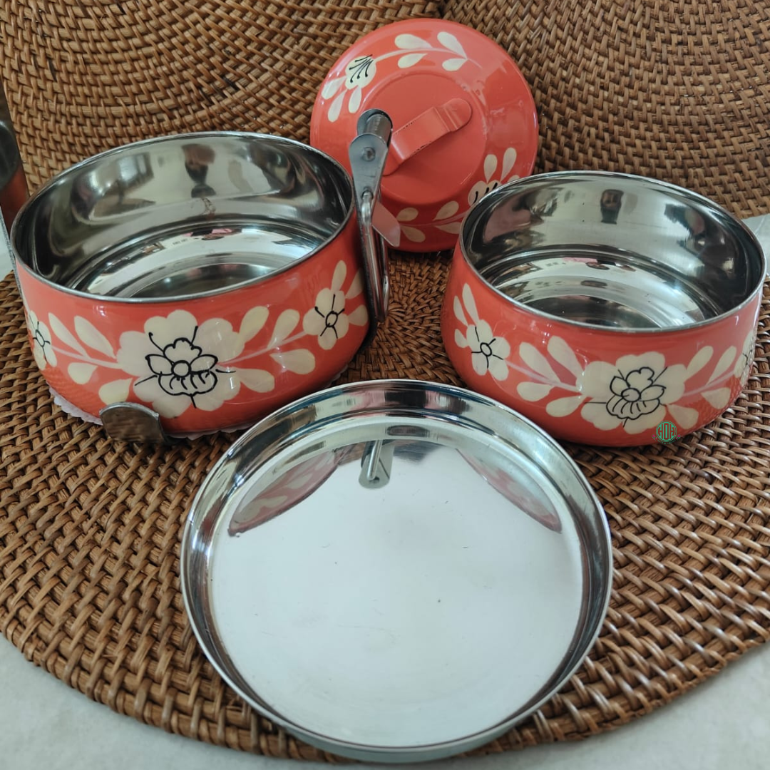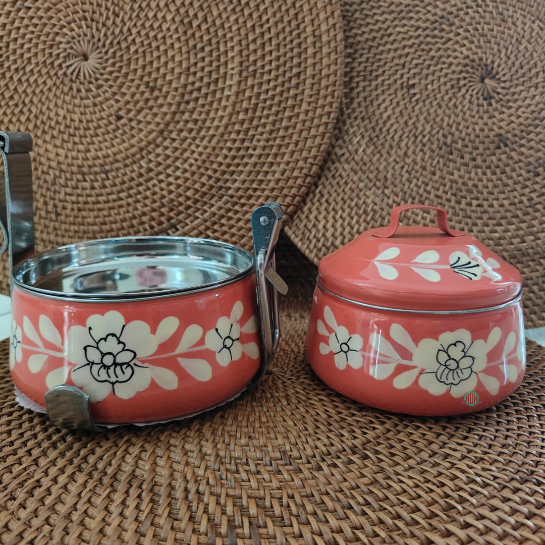 Ethnic Enamelware Steel Lunch Box – 2 Tier, Sustainable & Reusable
