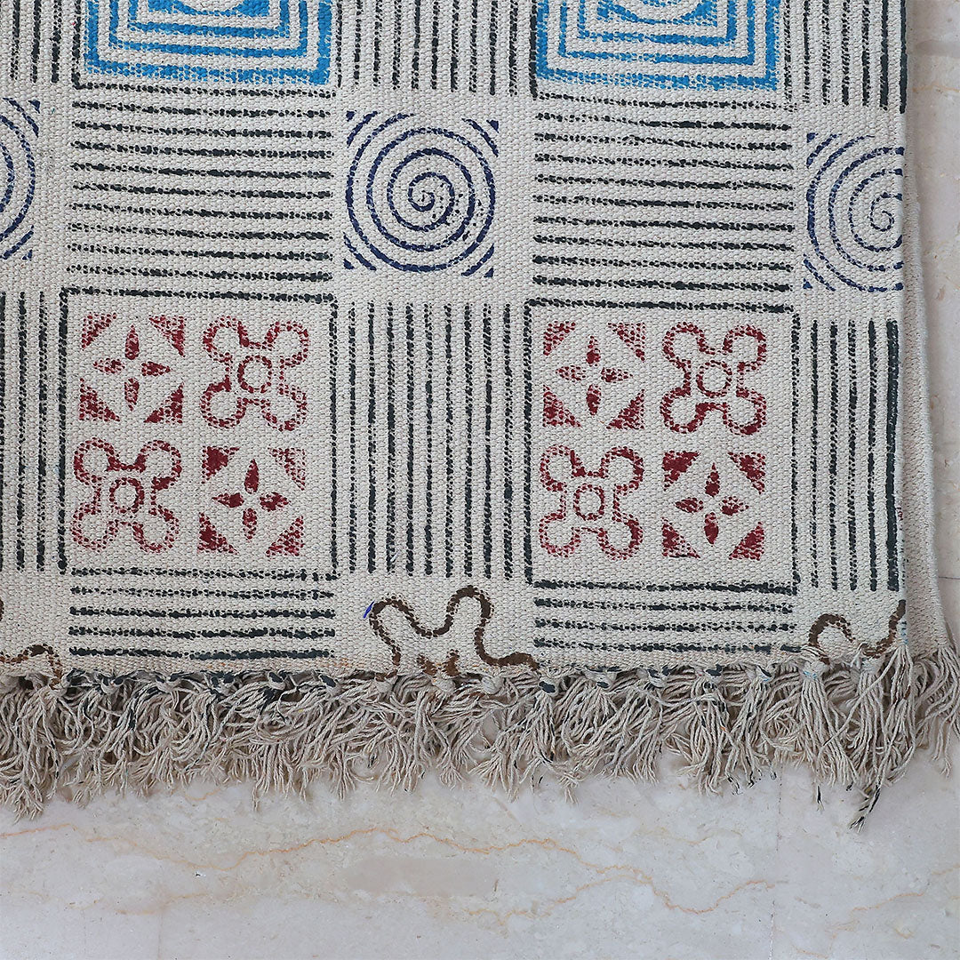 Geometric Floral Block Printed Cotton Dhurrie Rug | Handwoven Area Rug for Living Room & Home Decor