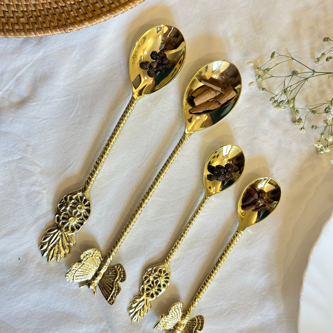 Luxury Gold-Plated Pineapple and butterfly Cutlery Set (Set of 4)
